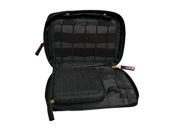 The RAW Rolling Papers x Trappkit is your ultimate smokers journey kit. Not only does it trap odours with 6 layers of odour blocking materials, but it has a unique cross cord/strap design to hold all of your accessories. Trappin Ain’t Easy!