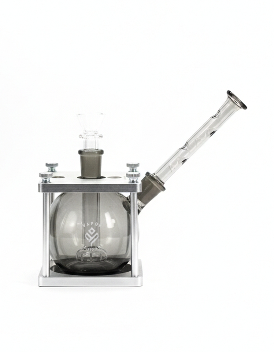 The Medic Tesseract with Smoked Black Globe Unicron combines industrial design with smooth, controlled performance. Built with an all-stainless skeletal cube housing, this compact upright bong is designed for stability, style, and versatility. The smoked black Unicron globe delivers clean filtration, while the stainless arm features built-in holes to hold bangers, carb caps, bowls, and more 🍜